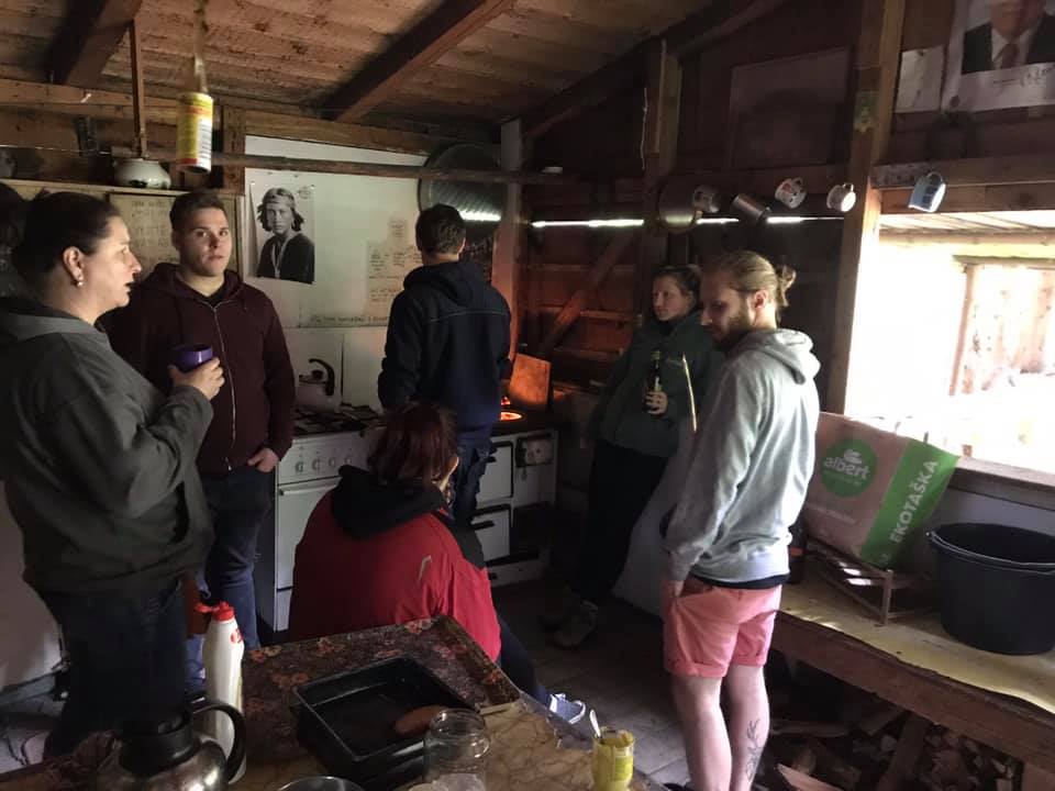 Aby nám nové stany co nejdéle vydržely, je potřeba je natřít a opravit. Navíc jsme museli nechat tábořiště prosvětlit od přerostlých olší, takže jsme ještě odklidili větve a větvičky a větve a větvičky a větve a větvičky … Byly toho tři mega haldy.
