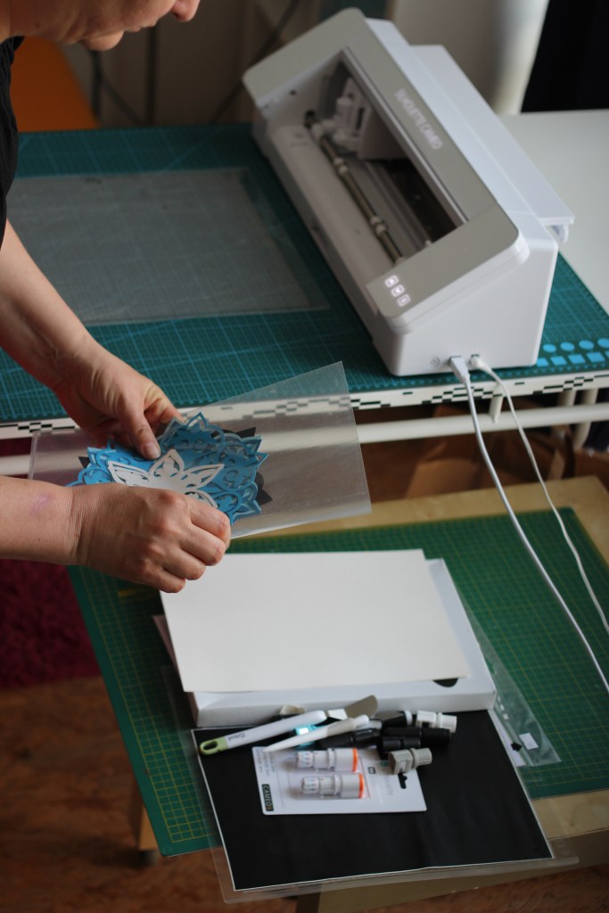 – praktická ukázka řezání papíru a samolepících či nažehlovacích folií, šablonového materiálu;